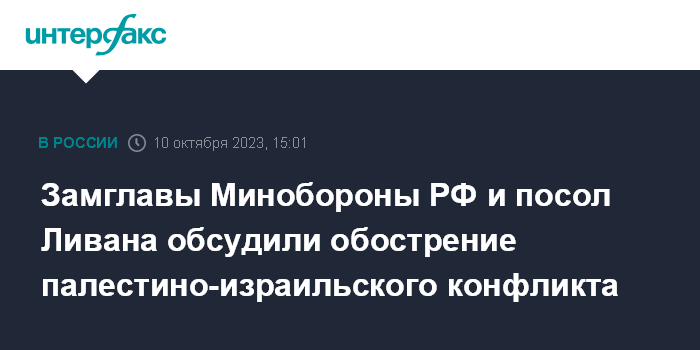 Замглавы Минобороны РФ и посол Ливана обсудили обострение палестино-израильского конфликта