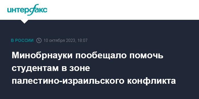 "Минобрнауки России поможет студентам, оказавшимся в зоне вооруженного конфликта между Израилем и Палестиной, оперативно перевестись в российские вузы", - говорится в сообщении.