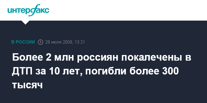 По его словам, за последние 10 лет в России в дорожно-транспортных происшествиях погибло свыше 300 тыс. человек, а более 2 млн получили увечья.