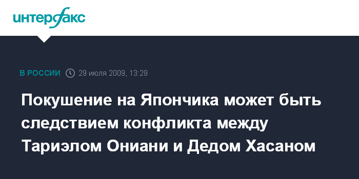 Покушение на Япончика может быть следствием конфликта между Тариэлом Ониани и Дедом Хасаном