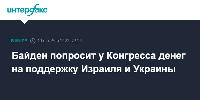 "Речь пойдет о запросе в Конгресс для Израиля. Также будет повторный запрос для Украины", - сказал он на брифинге в Белом доме.