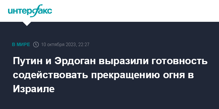 Путин и Эрдоган выразили готовность содействовать прекращению огня в Израиле