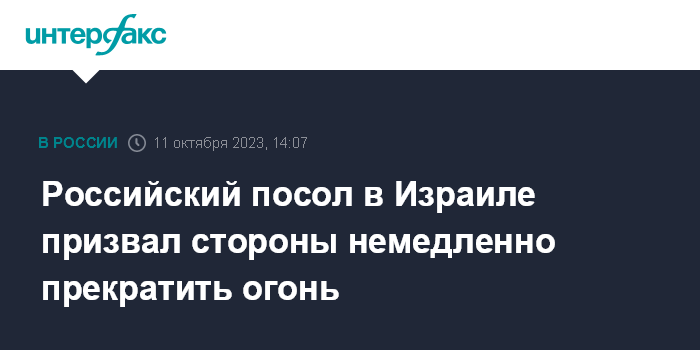 Российский посол в Израиле призвал стороны немедленно прекратить огонь