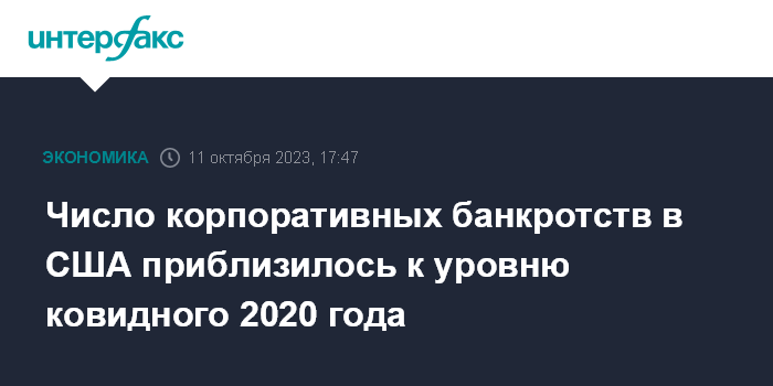 Москва. 11 октября. INTERFAX.RU - Количество корпоративных банкротств в США продолжает расти и может превысить по итогам 2023 года показатель ковидного 2020 года, сообщает MarketWatch.