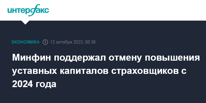 Минфин поддержал отмену повышения уставных капиталов страховщиков с 2024 года