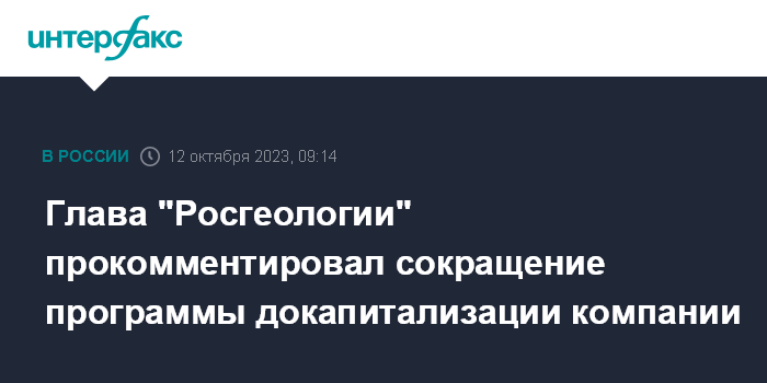 Глава "Росгеологии" прокомментировал сокращение программы докапитализации компании