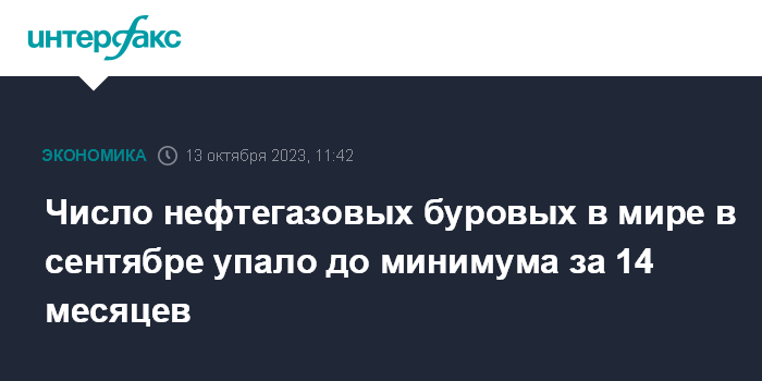 Число нефтегазовых буровых в мире в сентябре упало до минимума за 14 месяцев