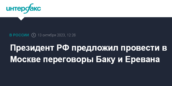 Президент РФ предложил провести в Москве переговоры Баку и Еревана