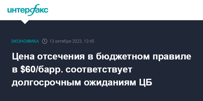 Цена отсечения в бюджетном правиле в $60/барр. соответствует долгосрочным ожиданиям ЦБ