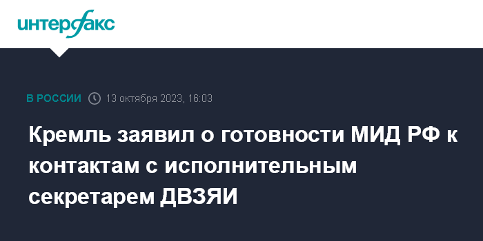 Кремль заявил о готовности МИД РФ к контактам с исполнительным секретарем ДВЗЯИ