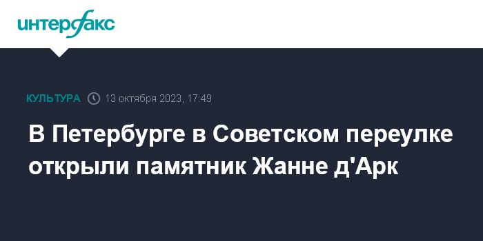 Москва. 13 октября. INTERFAX.RU - В Петербурге в Советском переулке торжественно открыли памятник Жанне д'Арк .