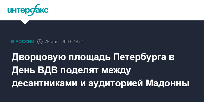 Дворцовую площадь Петербурга в День ВДВ поделят между десантниками и аудиторией Мадонны