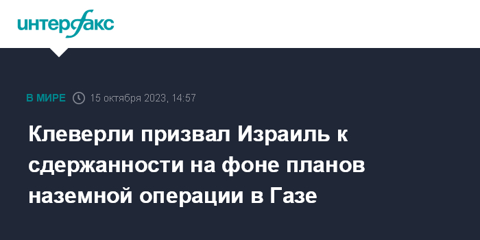 Клеверли призвал Израиль к сдержанности на фоне планов наземной операции в Газе