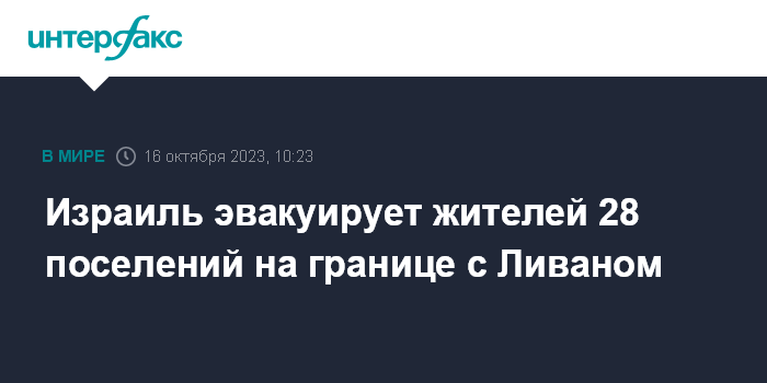 Москва. 16 октября. INTERFAX.RU - Министерство обороны и Армия обороны Израиля заявили, что эвакуируют жителей из 28 населенных пунктов, расположенных в радиусе до 2 км от границы с Ливаном, пишет The Times of Israel.