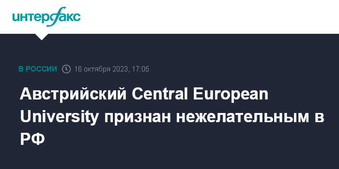 Москва. 16 октября. INTERFAX.RU - Генпрокуратура признала нежелательной в России деятельность международной неправительственной организации Central European University.