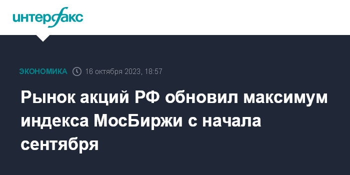 Рынок акций РФ обновил максимум индекса МосБиржи с начала сентября