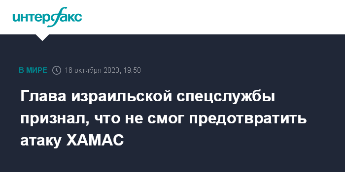 Глава израильской спецслужбы признал, что не смог предотвратить атаку ХАМАС