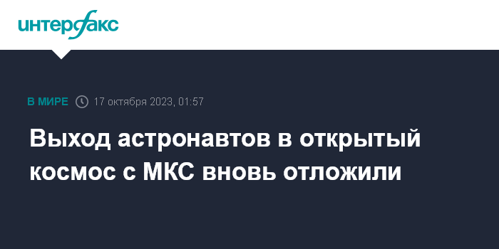 "Выход в открытый космос, который был намечен на дату не ранее 19 октября, теперь откладывается до конца этого года", - говорится в сообщении, опубликованном на сайте космического агентства.