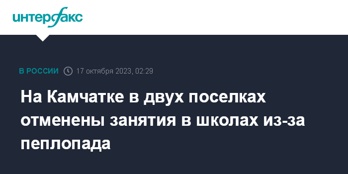 Москва. 17 октября. INTERFAX.RU - Поселок Ключи Усть-Камчатского района накрыло пеплом, отменены занятия в местных школах, сообщает Камчатский филиал Единой Геофизической службы (ЕГС) РАН на своей странице в телеграм-канале.