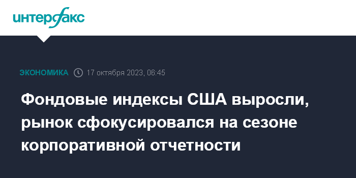 Фондовые индексы США выросли, рынок сфокусировался на сезоне корпоративной отчетности