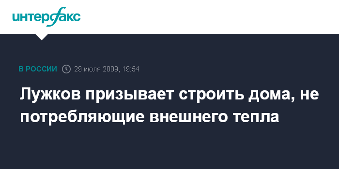 Лужков призывает строить дома, не потребляющие внешнего тепла