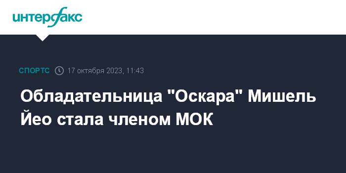 Москва. 17 октября. INTERFAX.RU - Малазийская актриса Мишель Йео избрана в качестве нового члена Международного олимпийского комитета, сообщается на сайте МОК.