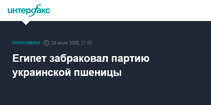 Киев. 29 июля. INTERFAX.RU - Генеральный прокурор Египта постановил реэкспортировать 45 тыс. тонн пшеницы из Украины и Австралии в связи с ее низким качеством и непригодностью для потребления населением, сообщило египетское государственное новостное агентство MENA.