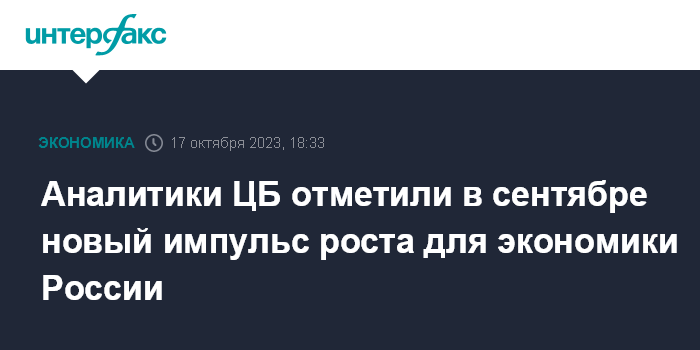 Аналитики ЦБ отметили в сентябре новый импульс роста для экономики России