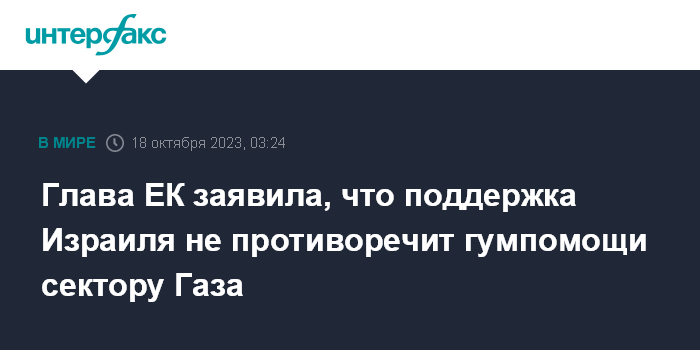 Глава ЕК заявила, что поддержка Израиля не противоречит гумпомощи сектору Газа