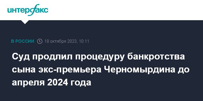 Суд продлил процедуру банкротства сына экс-премьера Черномырдина до апреля 2024 года