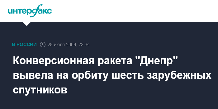 Москва. 29 июля. ИНТЕРФАКС-АВН - Шесть космических аппаратов, выведенных на орбиту российской конверсионной ракетой-носителем "Днепр", переданы на управление заказчикам.