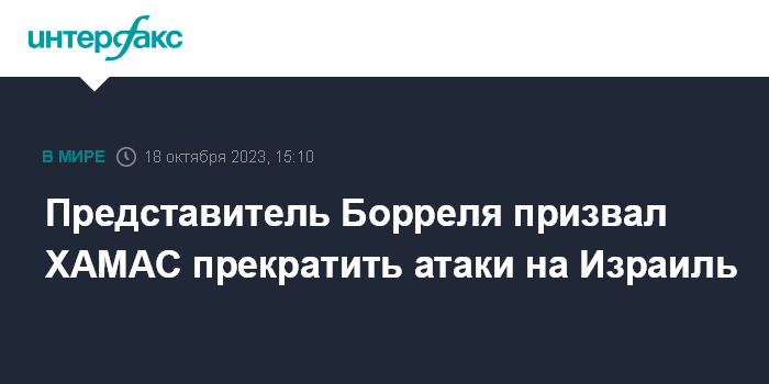 Представитель Борреля призвал ХАМАС прекратить атаки на Израиль