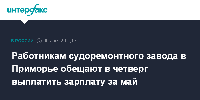 Работникам судоремонтного завода в Приморье обещают в четверг выплатить зарплату за май