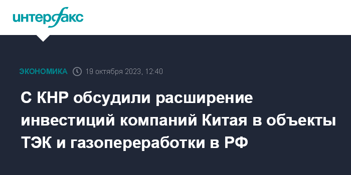 С КНР обсудили расширение инвестиций компаний Китая в объекты ТЭК и газопереработки в РФ