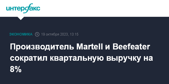 Производитель Martell и Beefeater сократил квартальную выручку на 8%