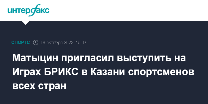 Матыцин пригласил выступить на Играх БРИКС в Казани спортсменов всех стран