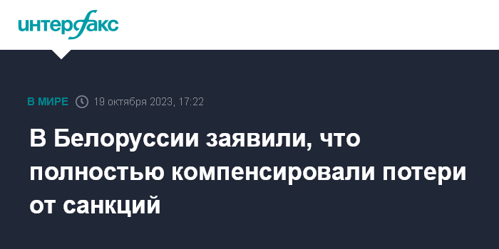 Москва. 19 октября. INTERFAX.RU - Белоруссия полностью компенсировала потери от западных санкций, заявил министр экономики республики Александр Червяков.