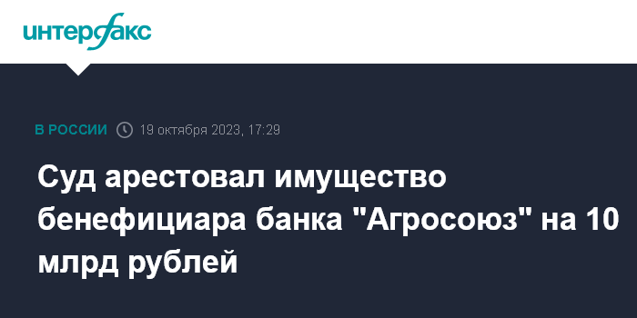 Суд арестовал имущество бенефициара банка "Агросоюз" на 10 млрд рублей