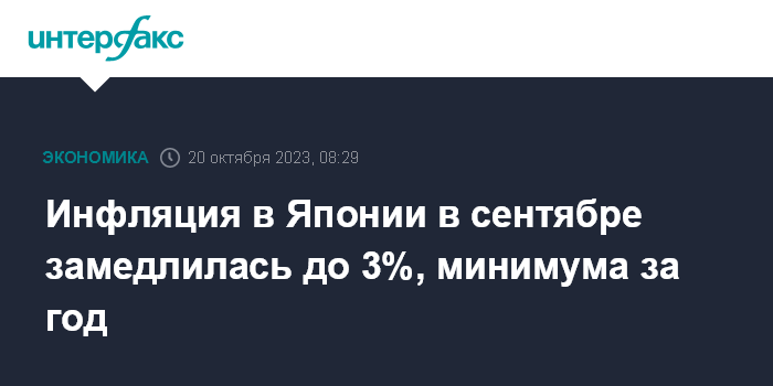 Инфляция в Японии в сентябре замедлилась до 3%, минимума за год