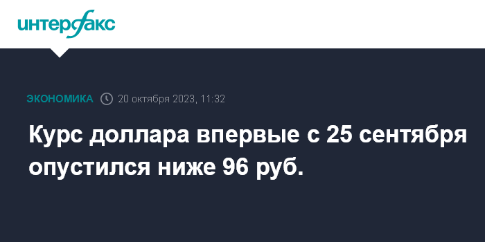 Курс доллара впервые с 25 сентября опустился ниже 96 руб.