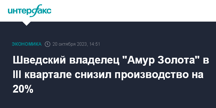 Шведский владелец "Амур Золота" в III квартале снизил производство на 20%