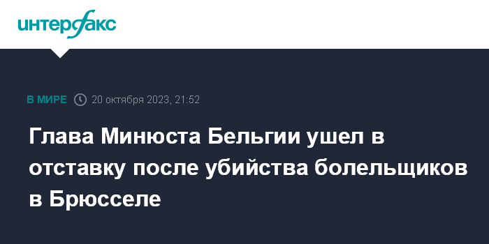 Глава Минюста Бельгии ушел в отставку после убийства болельщиков в Брюсселе