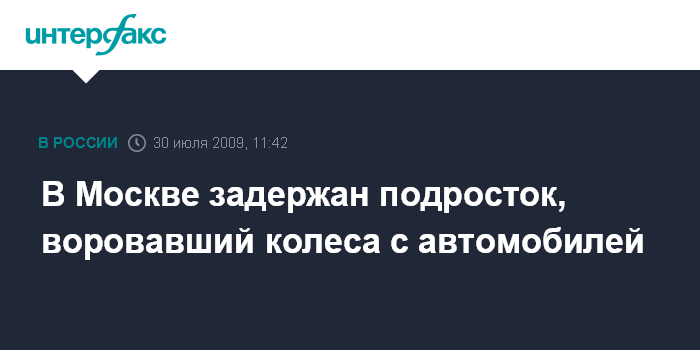 Москва. 30 июля. INTERFAX.RU - Несовершеннолетний житель Северо-Восточного округа столицы задержан по подозрению в краже колес с автомобилей, сообщил "Интерфаксу" источник в правоохранительных органах города в четверг.