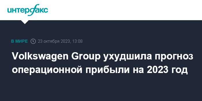 Москва. 23 октября. INTERFAX.RU - Volkswagen Group (VW) ухудшила прогноз операционной прибыли на 2023 год, отметив потери, связанные с переоценкой инструментов хеджирования рисков на сырьевых рынках.