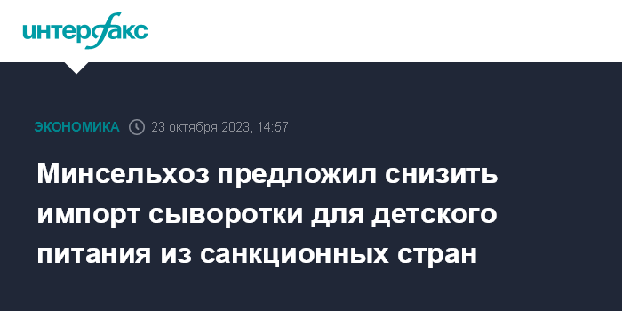 Минсельхоз предложил снизить импорт сыворотки для детского питания из санкционных стран