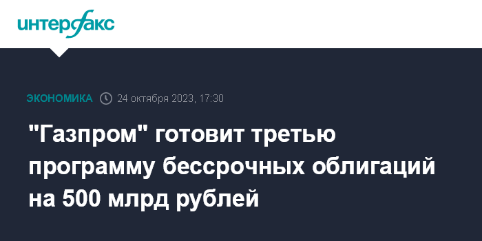 "Газпром" готовит третью программу бессрочных облигаций на 500 млрд рублей