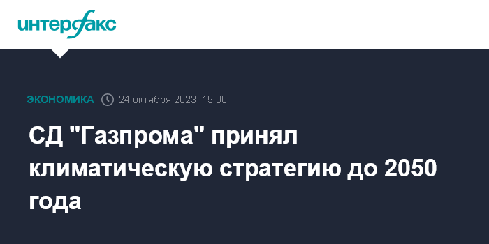 Москва. 24 октября. INTERFAX.RU - Совет директоров ПАО "Газпром" утвердил Климатическую стратегию компании до 2050 года, сообщает пресс-служба концерна.