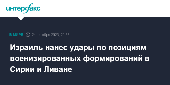 Москва. 24 октября. INTERFAX.RU - Армия обороны Израиля (ЦАХАЛ) во вторник нанесла серию ударов по позициям бойцов "Хезболлы", а также - по бойцам военизированных формирований в Сирии, сообщает во вторник The Times of Israel.