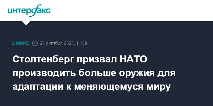 Столтенберг призвал НАТО производить больше оружия для адаптации к меняющемуся миру