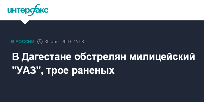 Махачкала. 30 июля. INTERFAX.RU - Трое сотрудников милиции получили ранения в результате нападения на милицейский наряд, совершенного в Кизилюртовском районе Дагестана.